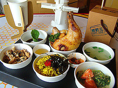 美味套餐:以蜂蜜做調味的美味餐點,包含蜂蜜醋、主菜、奶油燉鮮蔬、大坑麻竹筍湯、和風涼拌雞絲、蜂蜜咖啡凍