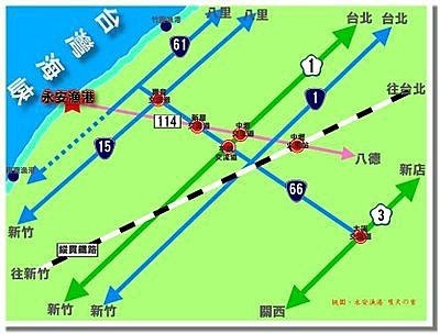 b. 中山高下新屋交流道,循 114 縣道往永安方向