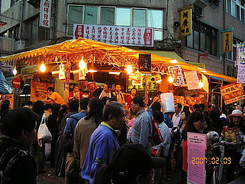 一路上就這麼人擠人擠到了霞海城隍廟口,