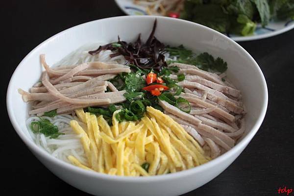 越南人常佐以生芽菜、香葉,並配上切片牛肉或雞絲食用,