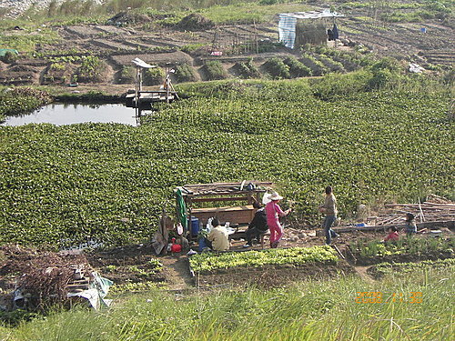 樹林柑園橋下假日種菜休閒的市民