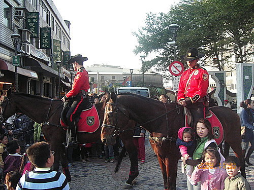 鶯歌老街的騎警 台灣的騎警似乎是專給人拍照用的